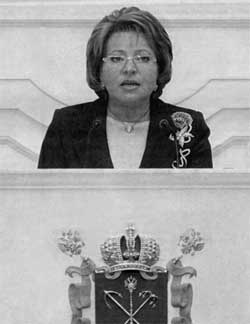 В. И. Матвиенко выступает в Законодательном собрании Санкт-Петербурга.