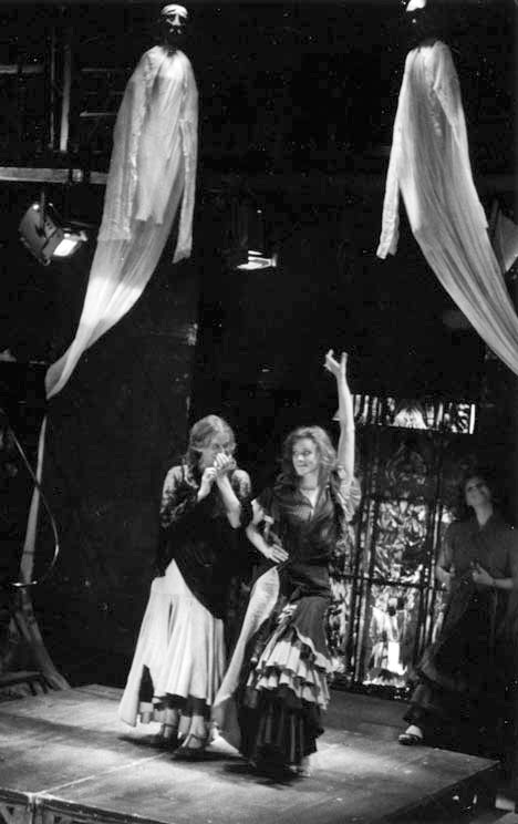 У Лорки мы решили ставить не классическую испанскую «Кровавую свадьбу», которую как нужно могут поставить только испанцы, а трагическую, общечеловеческую, исповедально-автобиографическую пьесу «Когда пройдет пять лет». Можно было сделать несколько других, но у меня для этого не было столько возможностей и сил. У нас была потрясающая атмосфера: высокие стулья, свечи, прозрачные занавеси, стихотворные тексты Лорки переплетались с ритмами фламенко. Я горжусь тем, что мы успели сделать и обкатать этот спектакль к столетию Лорки (5 июля 1998 года). На спектакле был даже испанский атташе. Зрители висели гроздьями на балконах! В 1995–1996 годах кассеты с записью разных вариантов этого спектакля были отправлены в Испанию: одна теперь в Мадриде, другая в музее Лорки в Гранаде. А музей – это на века! Для меня Лорка – необыкновенная личность, совершенно новая для Испании.