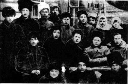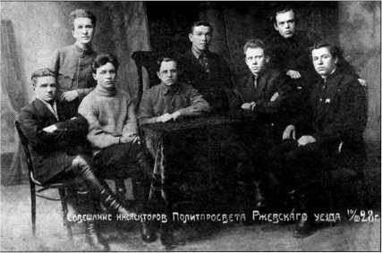 Группа активистов Зубцовской уездной организации Российского коммунистического союза молодежи (РКСМ). 1919 год. Сергей Круглов — крайний слева.