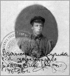 Фотография члена ревизионной комиссии С.Н. Круглова, заверенная заместителем председателя Погорельского волостного исполнительного комитета. 1926 год.