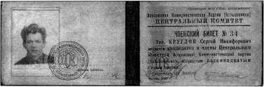 Членский билет № 034 С.Н. Круглова, избранного на XVIII съезде Коммунистической партии кандидатом в члены Центрального комитета ВКП(б). 1939 год.