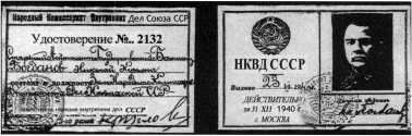 Удостоверение заместителя наркома внутренних дел Казахской ССР старшего лейтенанта госбезопасности Н.К. Богданова, подписанное заместителем наркома внутренних дел СССР по кадрам комиссаром госбезопасности III ранга С.Н. Кругловым. 1940 год.