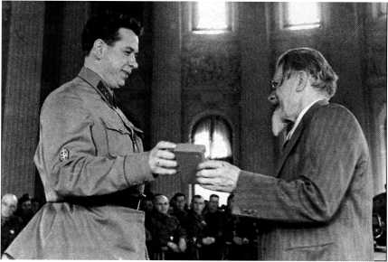 Председатель Президиума Верховного Совета СССР Н.А. Шверник вручает орден Ленина министру внутренних дел СССР С.Н. Круглову. 1952 год.