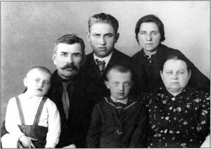 Никифор Яковлевич и Любовь Игнатьевна с семьей сына Василия Никифоровича Яковлева (младшего брата С.Н. Круглова) и его жены Анастасии. На переднем плане дети (внуки) Борис и Владимир. 1940 год.