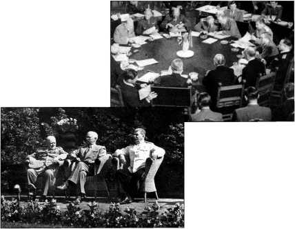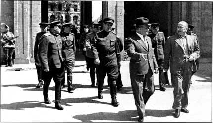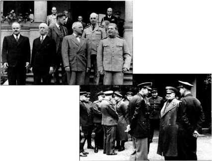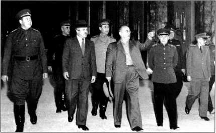 Нарком иностранных дел СССР В.М. Молотов и нарком внутренних дел СССР Л.П. Берия проверяют готовность территории Потсдама к проведению конференции под кодовым названием «Пальма» глав трех держав-победительниц — СССР, США и Великобритании. 15 июля 1945 года.