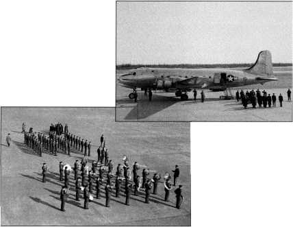 Торжественная встреча в аэропорту Сан-Франциско (США) советской делегации во главе с министром иностранных дел В.М. Молотовым, прибывшей на открытие первой сессии Организации Объединенных Наций (ООН). Апрель 1945 года.