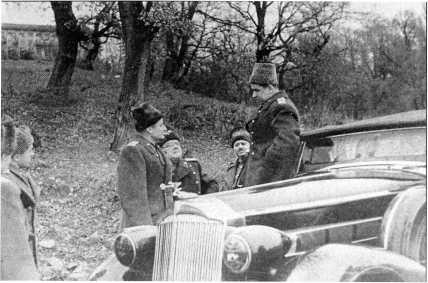 Министр внутренних дел СССР генерал-полковник С.Н. Круглов дает указания при выезде на объект. 1948 год.