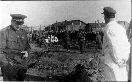 Министр внутренних дел СССР С.Н. Круглов на раскопках захоронения жертв фашистских злодеяний в одном из бывших немецких лагерей военнопленных советских воинов. 1946 год.