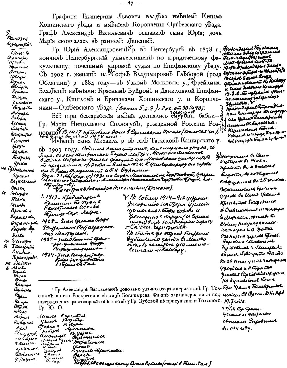 Последняя страница личного экземпляра книги Ю. А. Олсуфьева «Матерьялы к истории рода Олсуфьевых» (Москва, 1911) с рукописными вставками автора 1920–1930-х годов. Частное собрание, Москва
