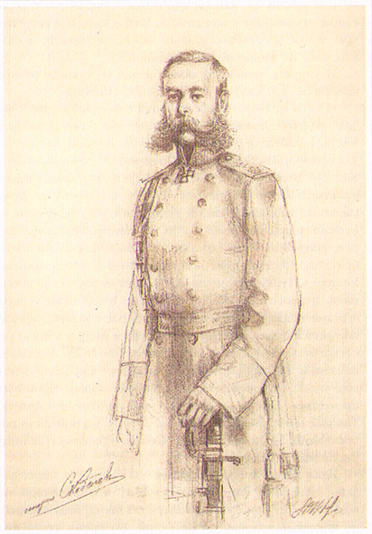 Скобелев был не просто генерал. Он был Белый генерал. Сколько в этом звании солидного, седовласого, мудрого. Да и портрет... Пышные длинные усы и густая борода, высокий лысый лоб, глаза чуть навыкате — крупные черты лица всегда старят. В год смерти ему исполнилось тридцать девять лет.