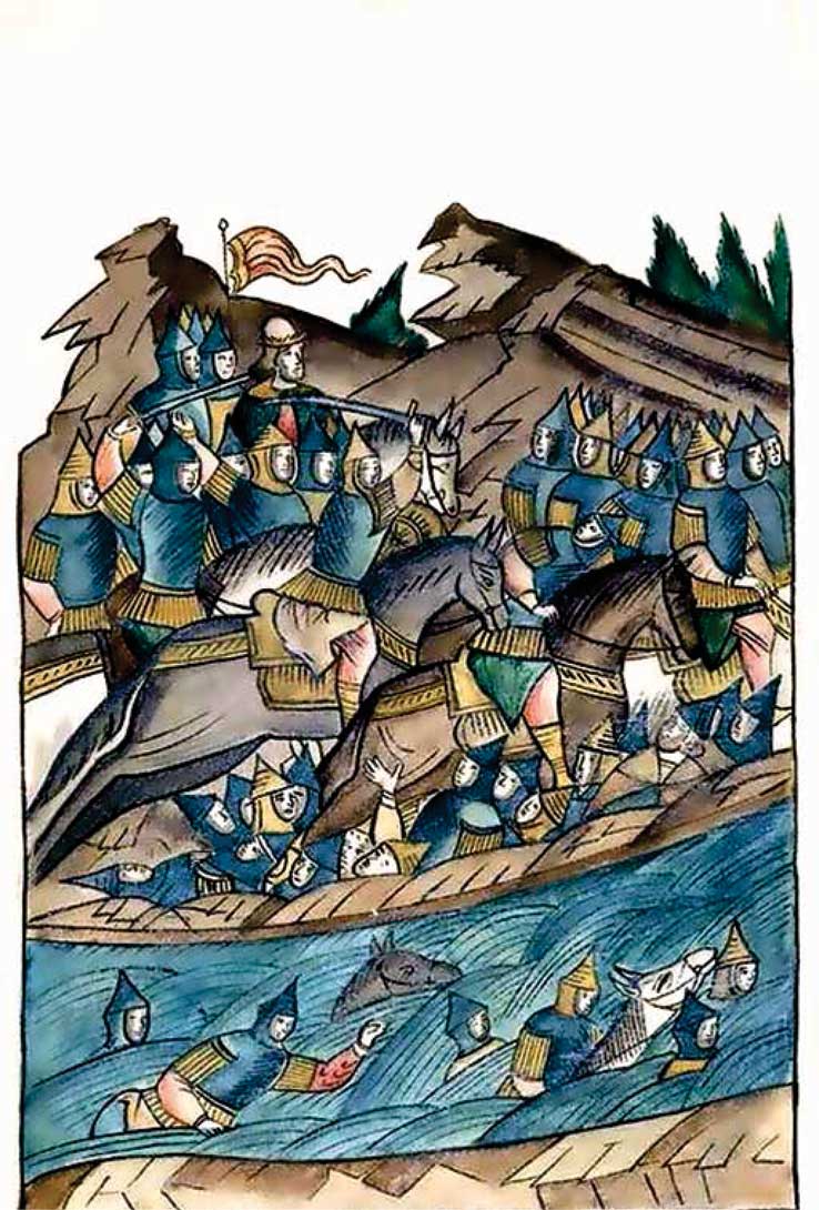 Битва на реке Воже. Миниатюра Лицевого летописного свода
