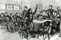 Однако быстро устав от провинциального Кишинева, в ноябре 1820 года Пушкин поехал погостить в Каменку – имение, принадлежащее сводным братьям генерала Н.Н. Раевского – Давыдовым. В Каменке (Киевская губерния) было два мира, разделенные, по выражению поэта, темами "аристократических обедов и демагогических споров". Первый кружок был представлен тучным и пожилым генералом в отставке Александром Львовичем Давыдовым, которого Пушкин назвал "толстым Аристиппом". В своих заметках "Table talk" поэт изобразил его вторым Фальстафом" – "сластолюбив, трус, хвастлив, не глуп, забавен, без всяких правил, слезлив, и толст".